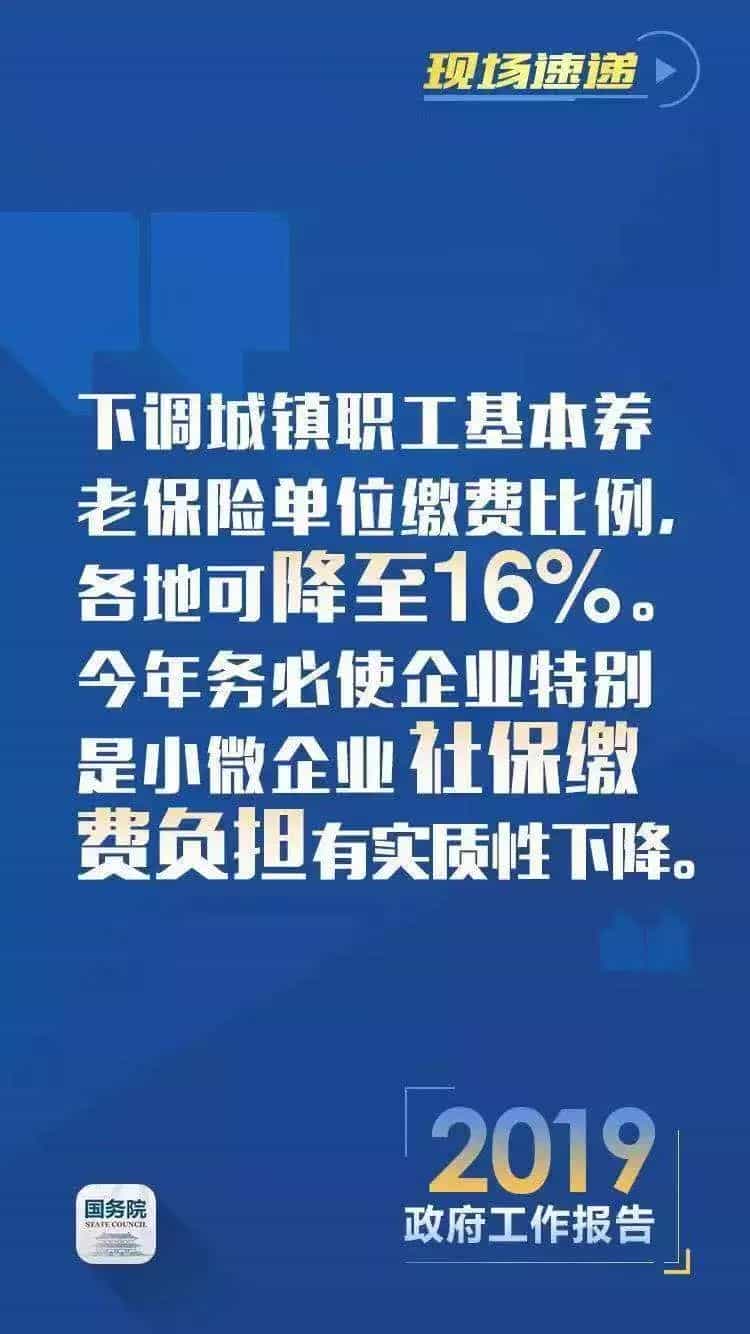 3、降低企業(yè)社保繳費負(fù)擔(dān)。《政府工作報告》還提出,2019年要明顯降低企業(yè)社保繳費負(fù)擔(dān),下調(diào)城鎮(zhèn)職工基本養(yǎng)老保險單位繳費比例,各地可降至16%。穩(wěn)定現(xiàn)行征繳方式,各地在征收體制改革過程中不得采取增加小微企業(yè)實際繳費負(fù)擔(dān)的做法。