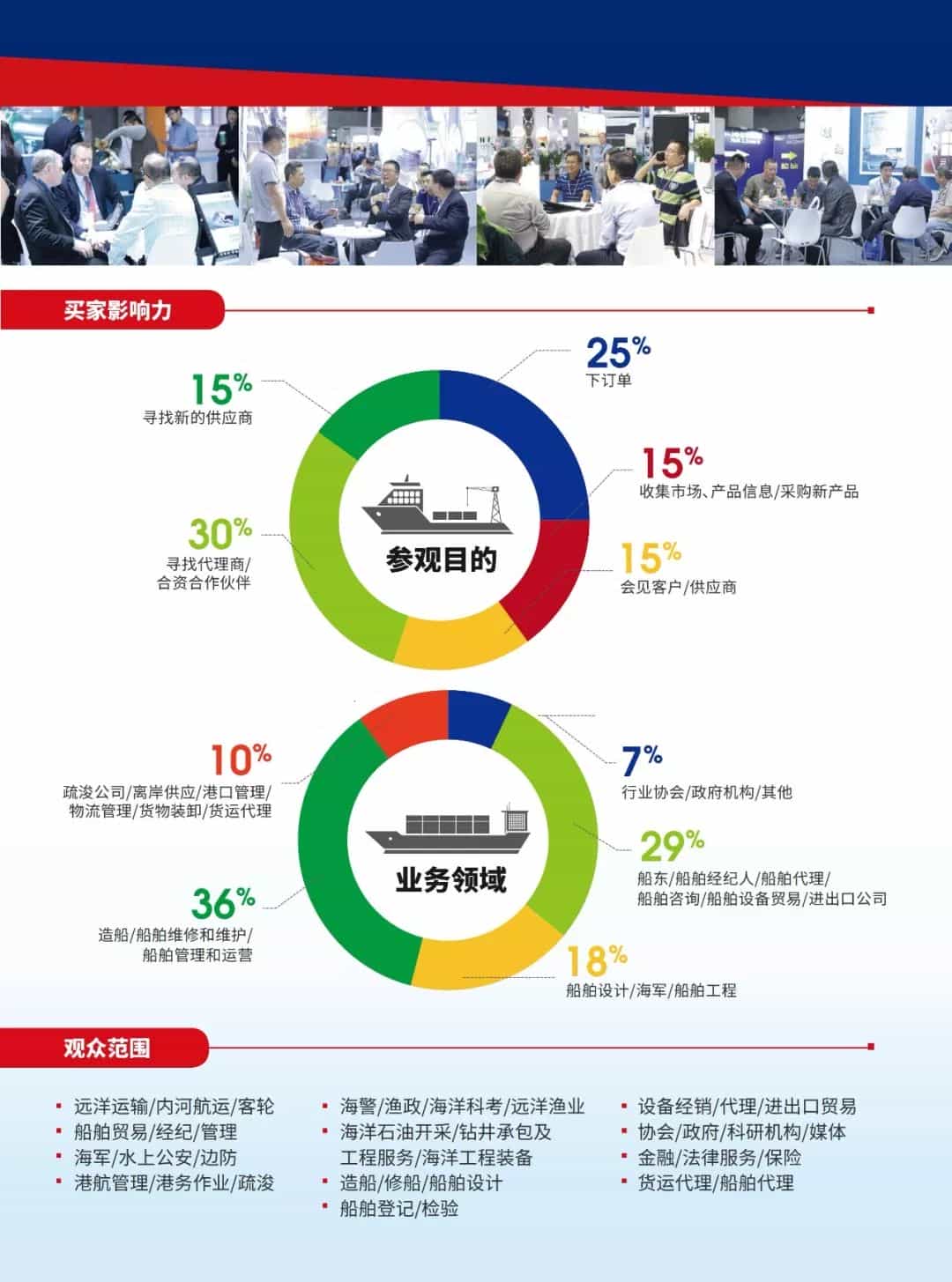 當前,全球海事業(yè)機遇和挑戰(zhàn)并存,業(yè)界之間更需要加強交流與合作,鞏固原有客戶,發(fā)展新業(yè)務。INMEX China 2020是了解全球海事業(yè)最新產品、技術和服務的最佳渠道,也是業(yè)內專業(yè)人士面對面交流和開展業(yè)務的理想平臺。參加INMEX China 2020,您將與來自中國及東南亞、歐洲、中東、南美等世界各地的船東、造修船、海洋石油、海洋工程、港口及海裝、海警、港務、航道、打撈、救助、海洋科考、海洋漁業(yè)、水上客運等領域的企業(yè)決策者開展商貿洽談并建立合作關系。