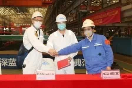 2月26日,中國船舶集團所屬廣船國際為美國PANGAEA公司建造的9.5萬噸冰區(qū)散貨船首制船順利開工。該船為廣船國際在疫情期間開工的首艘船。PANGAEA監(jiān)造組余小平與DNVGL船級社Krzysztof Kurek,及PANGAEA項目經理何永才分別代表三方在開工證明文件上簽字。