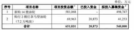 中遠(yuǎn)海能這一募資計(jì)劃最初在2017年10月披露,當(dāng)時(shí),中遠(yuǎn)海能計(jì)劃非公開發(fā)行約8.06億股,募資54億元,用于新購14艘油船和2艘巴拿馬型油船,以進(jìn)一步擴(kuò)充升級(jí)船隊(duì)規(guī)模。其中,新購14艘油船項(xiàng)目投資總額約為58.1億元,擬投入募集資金約49.9億元;購付2艘巴拿馬型油船項(xiàng)目投資總額約為6.996億元,擬投入募集資金約4.125億元。