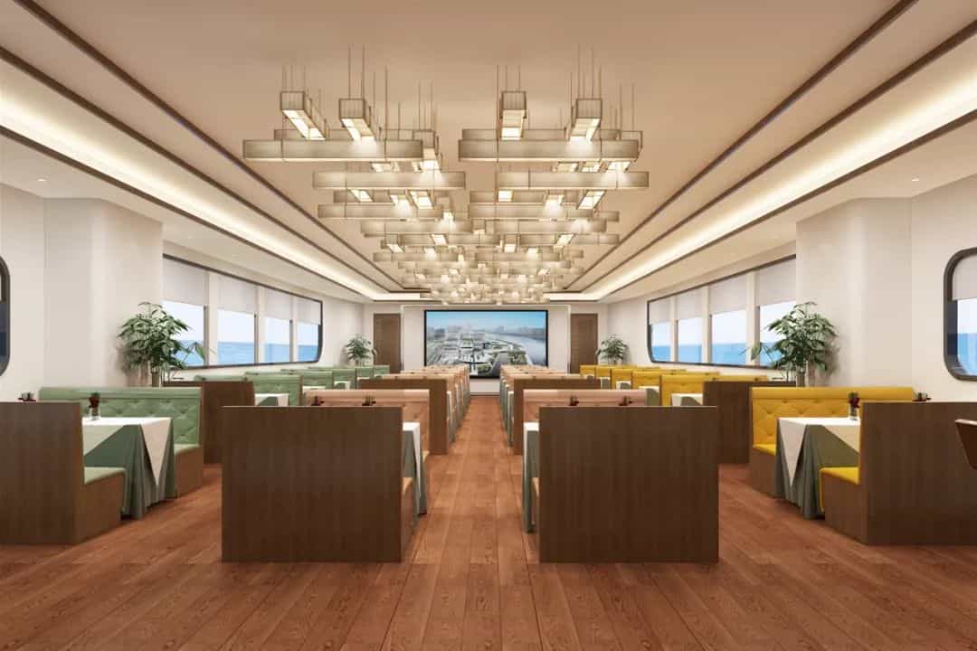 作為首批由國家交通部海事局正式批復(fù)并通過中國船級社CCS認(rèn)證的純電池動(dòng)力游船,486客位純電動(dòng)客船采用現(xiàn)代豪華游船的創(chuàng)新設(shè)計(jì)理念,滿足觀光游覽、接待、商務(wù)、慶典等綜合功能。該船主體為全鋼質(zhì)雙體焊接結(jié)構(gòu),采用全通透設(shè)計(jì),設(shè)兩層甲板,整船總長42.5m,型寬12.5m,型深3.3m,為全電力全回轉(zhuǎn)對轉(zhuǎn)舵槳雙機(jī)推進(jìn),航速10.0kn,建成后將躋身全國示范式純電動(dòng)游船行列,成為珠江夜游的又一極具代表性的名片!