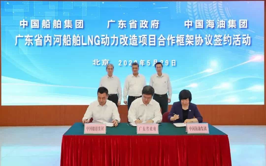 中國(guó)船舶集團(tuán)與廣東省人民政府、中國(guó)海油簽署《廣東省內(nèi)河船舶LNG動(dòng)力改造項(xiàng)目合作框架協(xié)議》