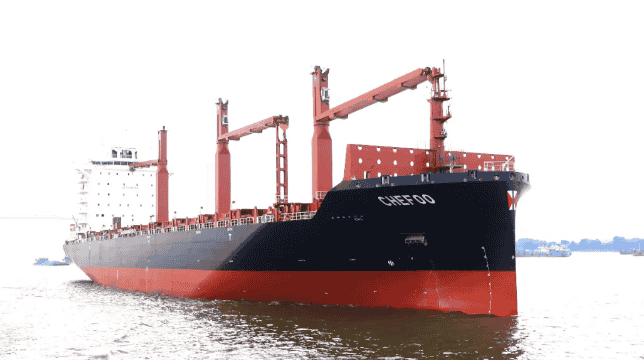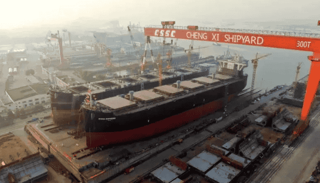 △ 中船澄西建造的7萬噸木屑船順利下水