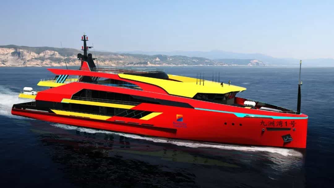 “九洲灣1號”被譽為國內首艘近海情境主題式迷你郵輪,該船總長62米,型寬11.6米,設計航速17節(jié),客位數(shù)398人。其設計理念定位為“海上移動美學平臺”。外觀采用紅、黃、黑為主色調,形象酷似中國古代神話人物—“哪吒”,并融入國潮文化和科技元素,在設計、建造、信息化等方面實現(xiàn)全方位提升。