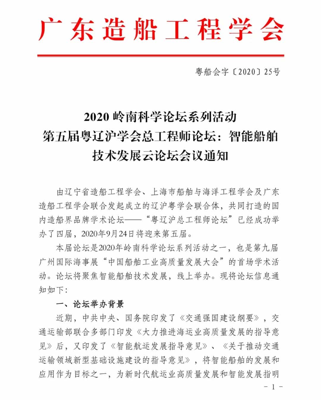 第五屆粵遼滬學(xué)會(huì)總工程師論壇:智能船舶技術(shù)發(fā)展云論壇會(huì)議通知