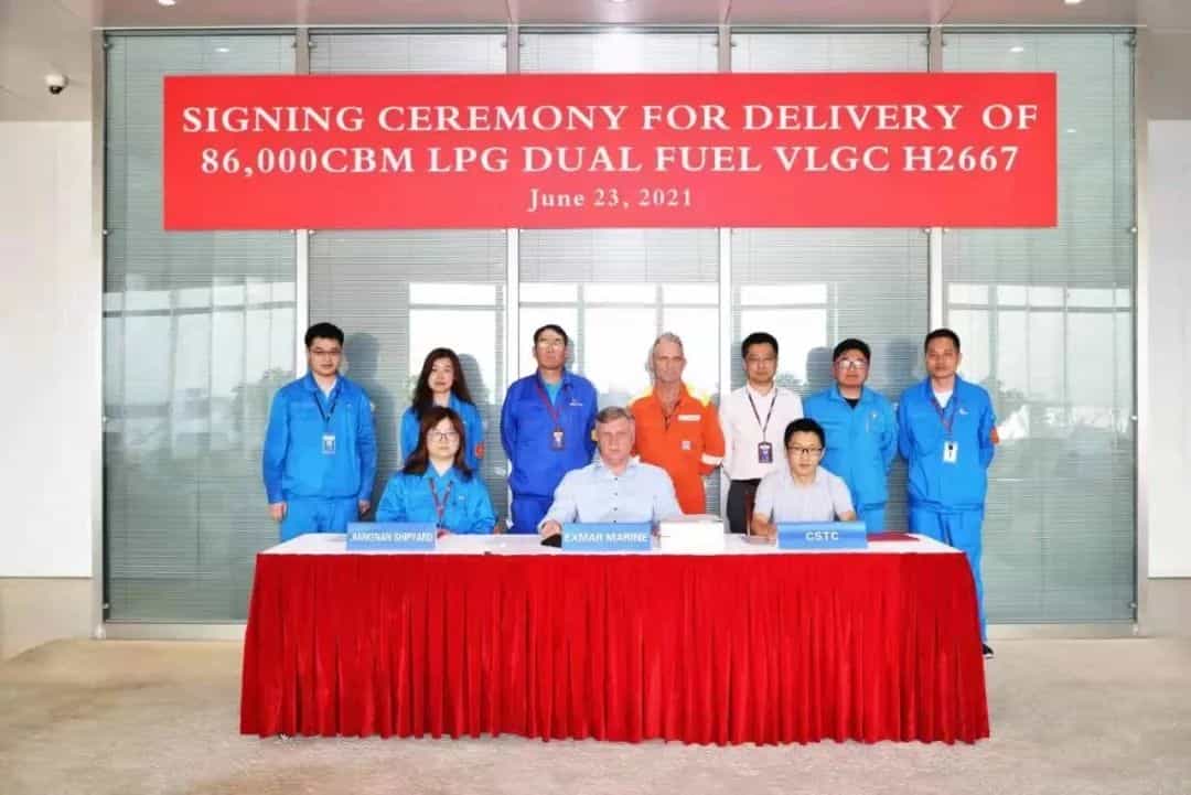 日前,按合同約定,第一艘船已正式交船,這也是當今世界最大的86000立方米級LPG雙燃料VLGC,意味著著江南造船與EXMAR公司首次合作取得圓滿成功。