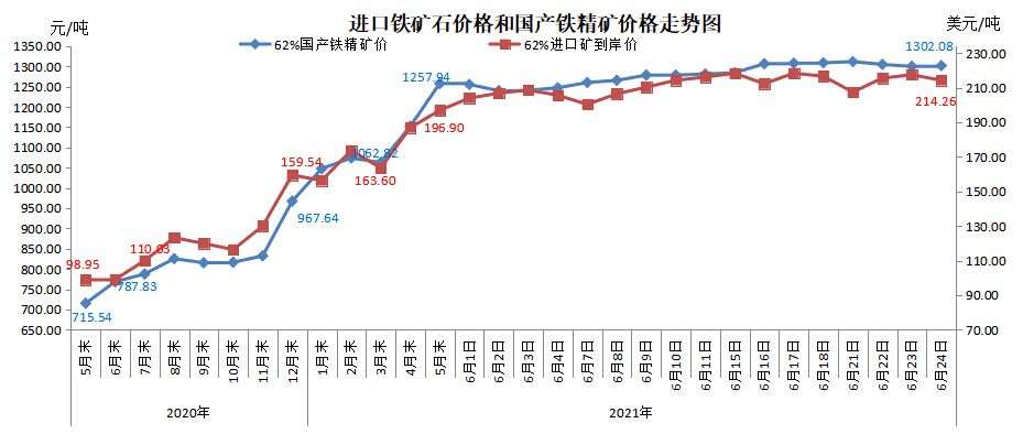 進(jìn)口與國產(chǎn)鐵礦石價(jià)格走勢圖