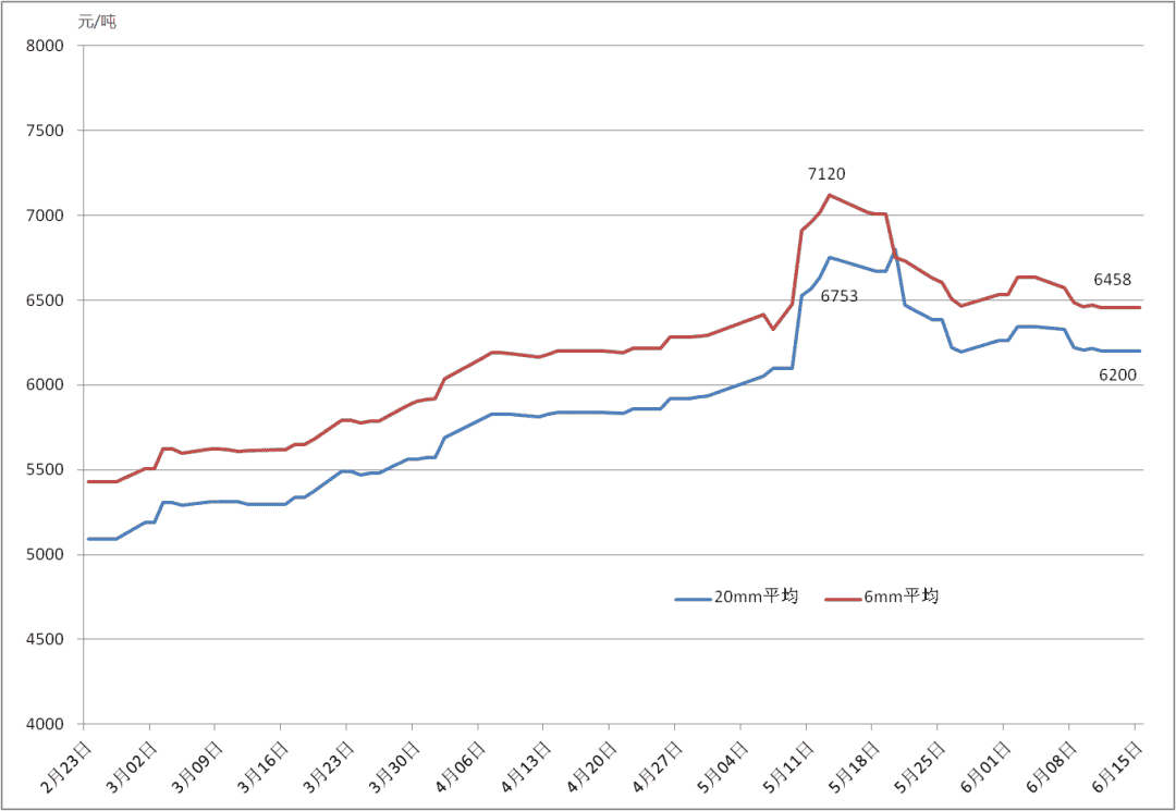 2020年11月份以來,受進(jìn)口鐵礦石價(jià)格快速上漲等因素影響,國內(nèi)造船板價(jià)格大幅上漲52.1%。截至2021年5月14日,國內(nèi)6mm造船板和20mm造船板均價(jià)分別達(dá)到7136元/噸和6753元/噸,創(chuàng)下近十年新高,給行業(yè)發(fā)展帶來重大影響。