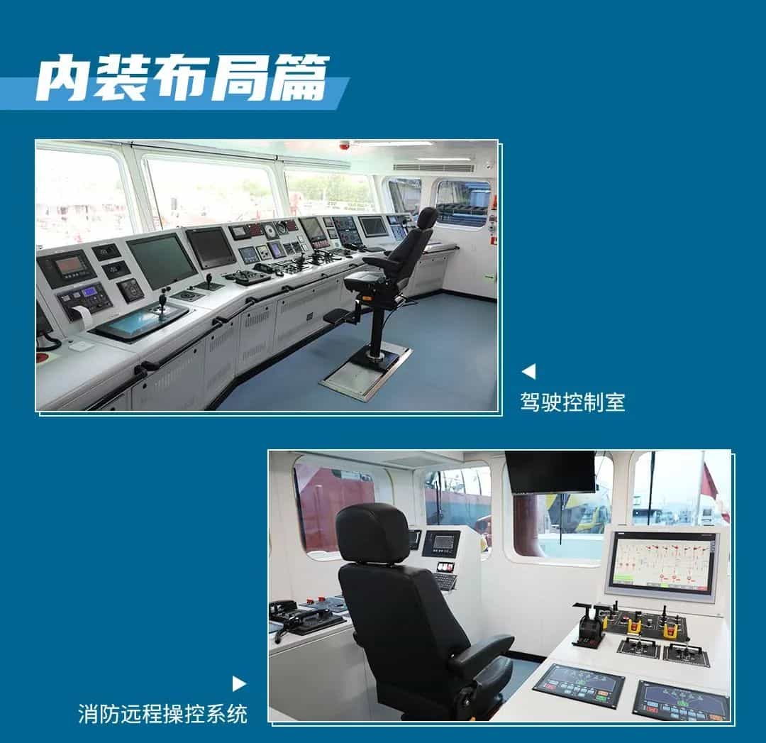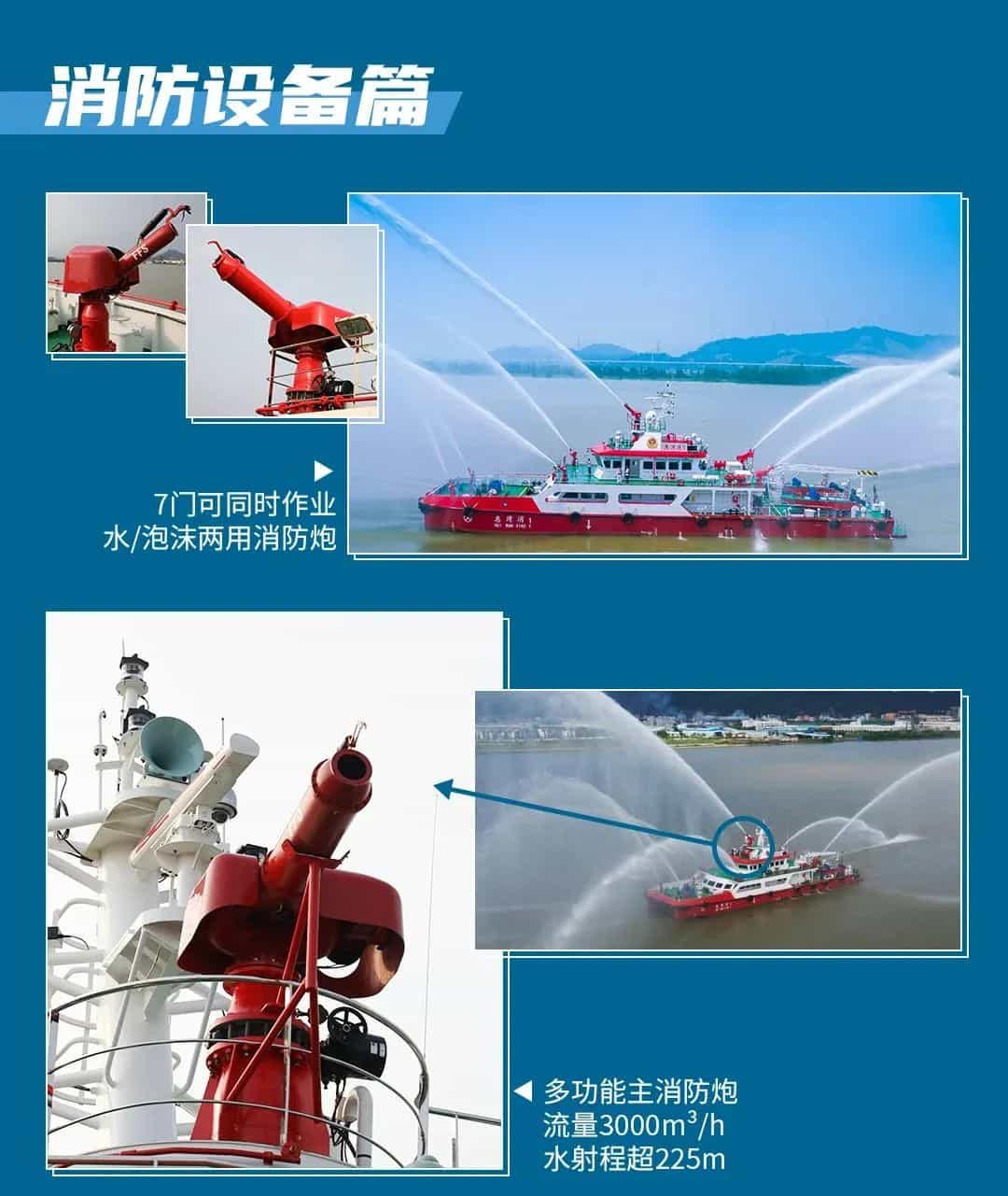 據(jù)悉,該船艏部采用DP1定位系統(tǒng),尾部采用全回轉(zhuǎn)系統(tǒng)的消防作戰(zhàn)船艇,既可在海上定位,也可進(jìn)行360度回轉(zhuǎn),提升了整船的機(jī)動(dòng)性與靈活性。此外,該船是中國(guó)海事局新法規(guī)(對(duì)防火作新的要求)頒布后建造的新型消防船,主船體與上建均采用鋼質(zhì)結(jié)構(gòu),加大了型深與結(jié)構(gòu)強(qiáng)度。尾部?jī)伤也捎貌裼腿剂贤七M(jìn)的鋁合金工作艇,引入國(guó)外知名品牌柴油掛機(jī),操作性能更為優(yōu)異.