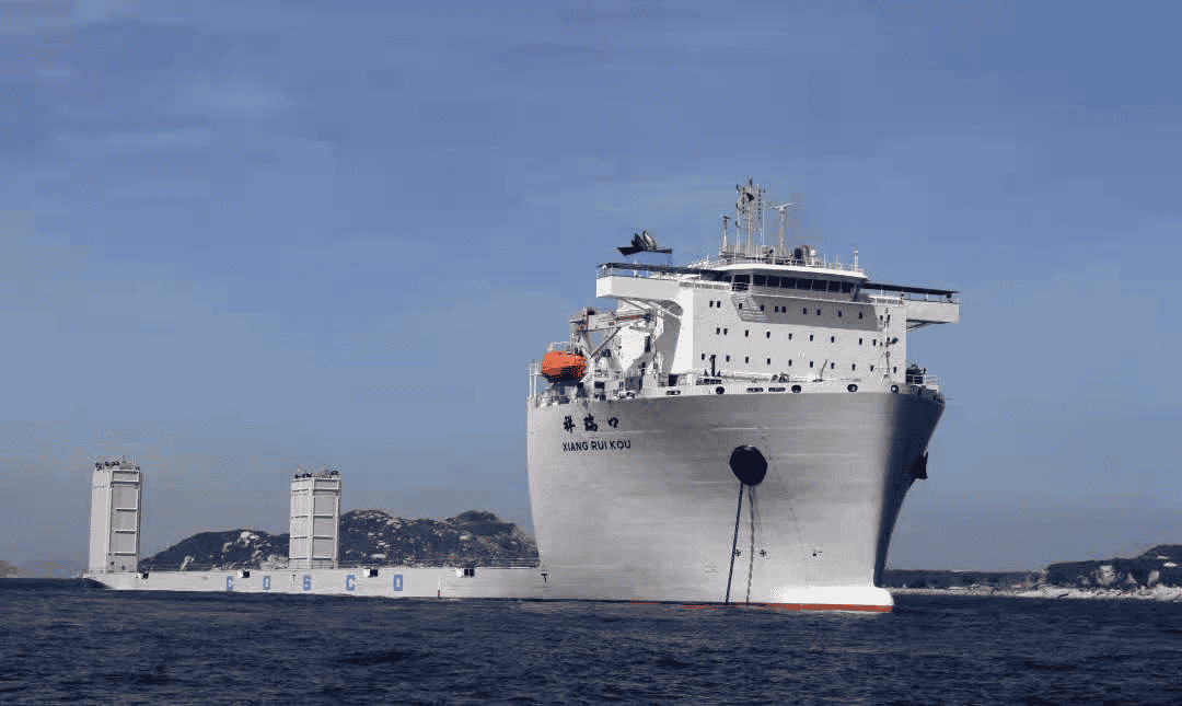 “泰安口”號由中國船舶集團(tuán)有限公司旗下廣船國際有限公司建造,于2002年交付,該船總長156米,型寬36米,型深10米,貨物甲板面積4500平方米,可在海上垂直下潛至19米,主要用于托運大型海工鋼結(jié)構(gòu)件、海上石油開采平臺、艦船等。該船也是我國建造的首艘半潛船,填補了我國造船業(yè)的空白。