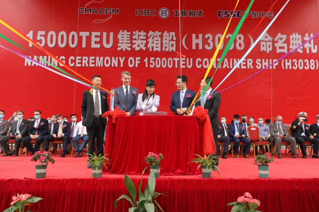 近日,由中國(guó)船舶集團(tuán)有限公司旗下滬東中華造船(集團(tuán))有限公司為法國(guó)達(dá)飛海運(yùn)集團(tuán)建造的15000TEU超大型集裝箱系列船首制船“達(dá)飛·和風(fēng)”(CMA CGM ZEPHYR)號(hào)在上海命名交付。