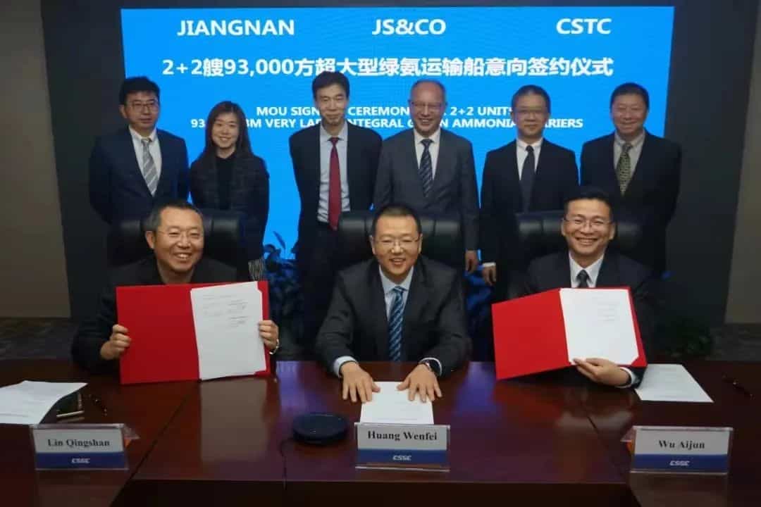 近日,中國(guó)船舶集團(tuán)有限公司旗下江南造船(集團(tuán))有限責(zé)任公司聯(lián)合中國(guó)船舶工業(yè)貿(mào)易有限公司與JS & Co視頻簽署了2+2艘93000立方米超大型綠氨運(yùn)輸船(VLAC)合作備忘錄。