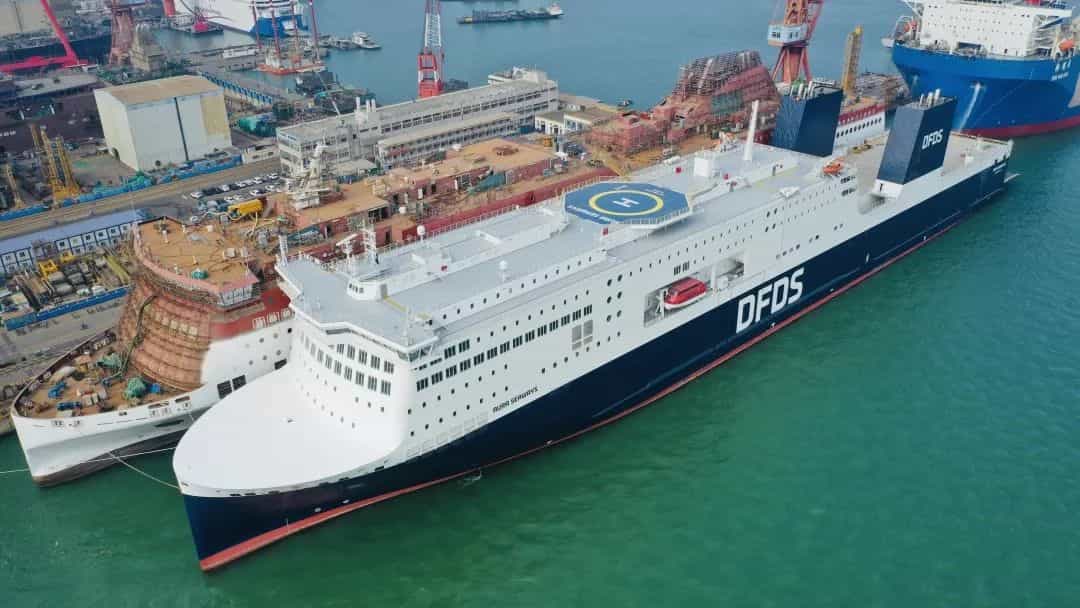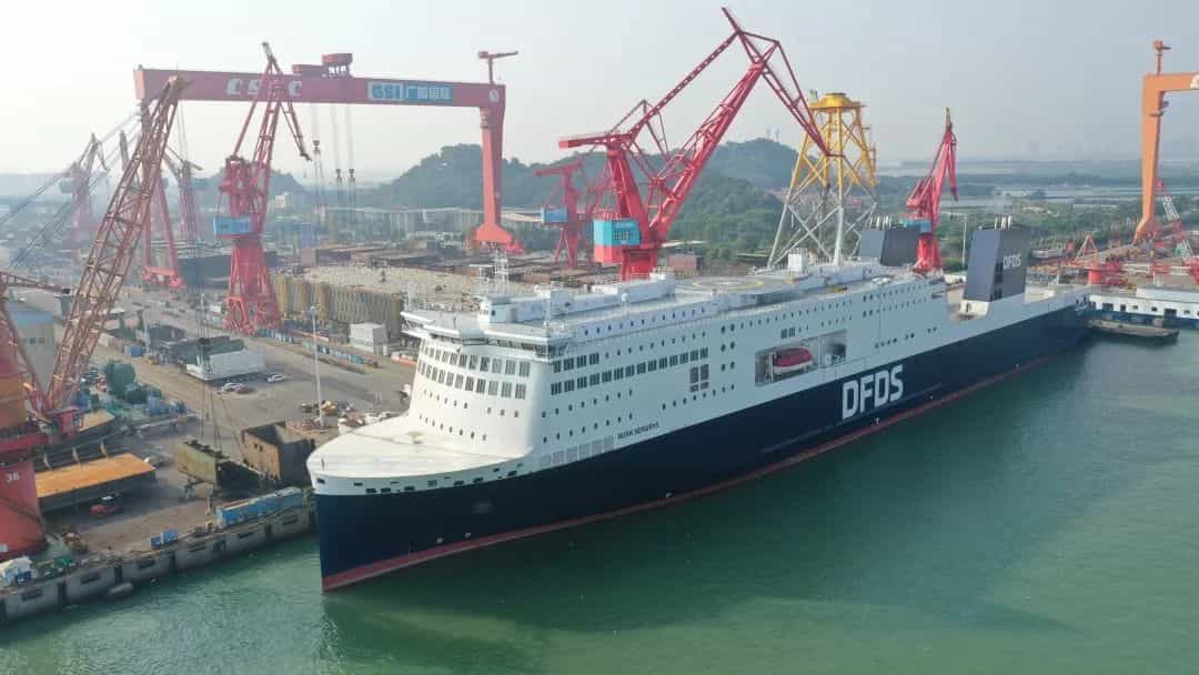 12月14日,由中國船舶集團(tuán)有限公司旗下廣船國際有限公司為北歐最大的航運(yùn)和物流公司丹麥Det Forenede Dampskibs-Selskab公司建造的600客/4500米車道豪華客滾船“AURA SEAWAYS”號(hào)在南沙交付。