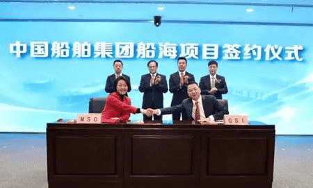 此外,此次簽約的船舶建造項(xiàng)目還包括:比利時(shí)CMB公司與青島北海船舶重工有限責(zé)任公司、中船貿(mào)易聯(lián)合簽署的2艘21萬(wàn)噸氨燃料預(yù)留散貨船項(xiàng)目;華夏金融租賃有限公司與中船澄西船舶修造有限公司、中船貿(mào)易聯(lián)合簽署的8艘63500噸散貨船項(xiàng)目;德翔海運(yùn)有限公司與上海外高橋造船有限公司、中船貿(mào)易聯(lián)合簽署的2艘7000TEU集裝箱船項(xiàng)目;SCHOELLER集團(tuán)旗下新加坡AAL公司與中船黃埔文沖船舶有限公司、中船貿(mào)易聯(lián)合簽署的4+2艘32000噸多用途重吊船項(xiàng)目;韓國(guó)H-Line航運(yùn)公司與廣船國(guó)際有限公司、中船貿(mào)易聯(lián)合簽署的2艘7000車(chē)雙燃料汽車(chē)運(yùn)輸船(PCTC)項(xiàng)目;MSC地中海航運(yùn)集團(tuán)旗下渡輪運(yùn)營(yíng)商GNV公司與廣船國(guó)際簽署的2艘1500客/3100米車(chē)道豪華客滾船項(xiàng)目,以及中國(guó)船舶(香港)航運(yùn)租賃有限公司與江南造船(集團(tuán))有限責(zé)任公司簽署的1+1艘超大型LNG運(yùn)輸船建造意向書(shū)。