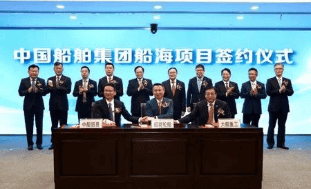 此次簽約項(xiàng)目中,包括招商局集團(tuán)有限公司旗下成員單位與中國(guó)船舶集團(tuán)旗下成員單位簽署的6個(gè)項(xiàng)目。分別是:招商局能源運(yùn)輸股份有限公司與大連船舶重工集團(tuán)有限公司、中國(guó)船舶工業(yè)貿(mào)易有限公司聯(lián)合簽署的1+1艘超大型液化天然氣(LNG)運(yùn)輸船建造意向書(shū);招商局工業(yè)集團(tuán)有限公司旗下船廠與中國(guó)船舶集團(tuán)柴油機(jī)有限公司分別簽署的5+2艘7000車(chē)滾裝運(yùn)輸船主機(jī)項(xiàng)目、4+2艘7000車(chē)滾裝運(yùn)輸船主機(jī)項(xiàng)目以及2艘5500立方米液化石油氣(LPG)運(yùn)輸船主機(jī)項(xiàng)目,招商局海通貿(mào)易有限公司與中國(guó)船舶集團(tuán)第七二五研究所旗下青島雙瑞海洋環(huán)境工程有限公司簽署的壓載水處理系統(tǒng)合同訂單,以及LNG供氣系統(tǒng)(FGSS)合作協(xié)議。