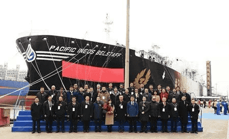 12月28日,由中國船舶集團(tuán)旗下中船貿(mào)易和江南造船作為聯(lián)合賣方,為交銀租賃和山東海洋集團(tuán)下屬太平洋氣體船公司(Pacific Gas)建造的全球最大艙容、世界首制采用B型艙的99000立方超大型乙烷運輸船(VLEC)“PACIFIC INEOS BELSTAFF”正式命名交付。