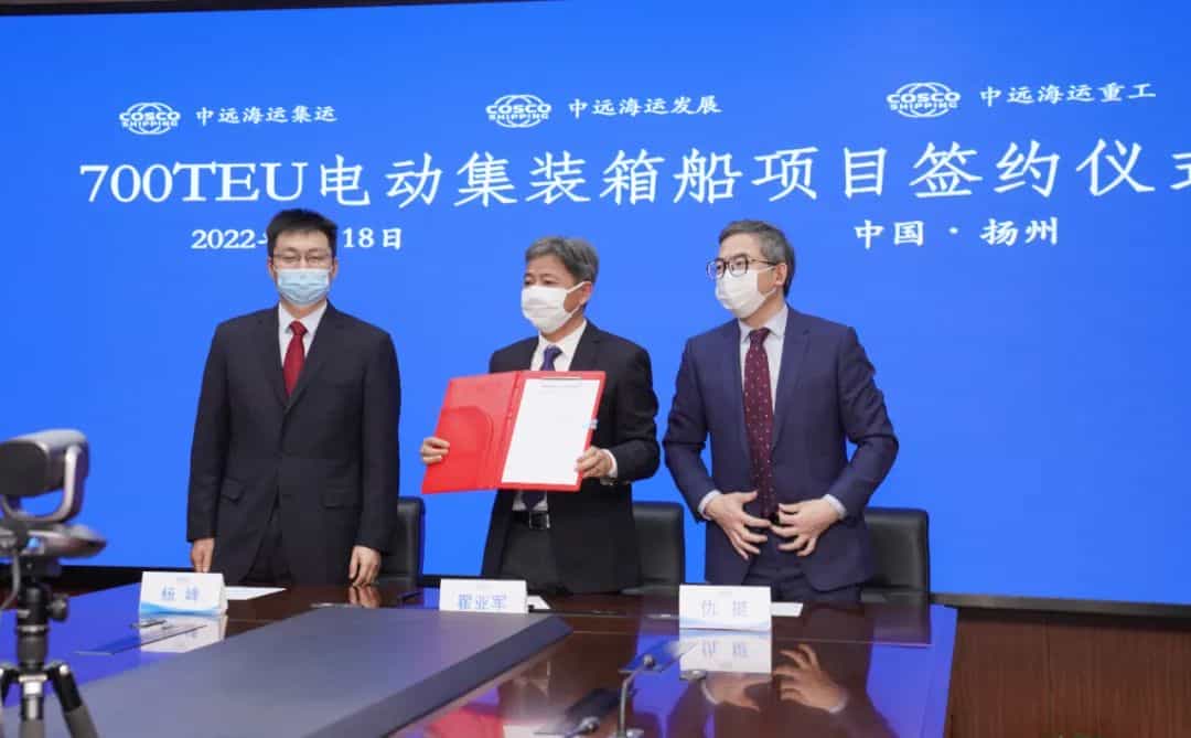 近日,揚(yáng)州中遠(yuǎn)海運(yùn)重工有限公司與中遠(yuǎn)海運(yùn)發(fā)展股份有限公司通過視頻連線的方式成功簽署2艘700TEU級(jí)電動(dòng)集裝箱船建造合同。根據(jù)中遠(yuǎn)海發(fā)發(fā)布的公告,該系列船單船價(jià)格為5800萬元,2艘合同總價(jià)1.16億元。