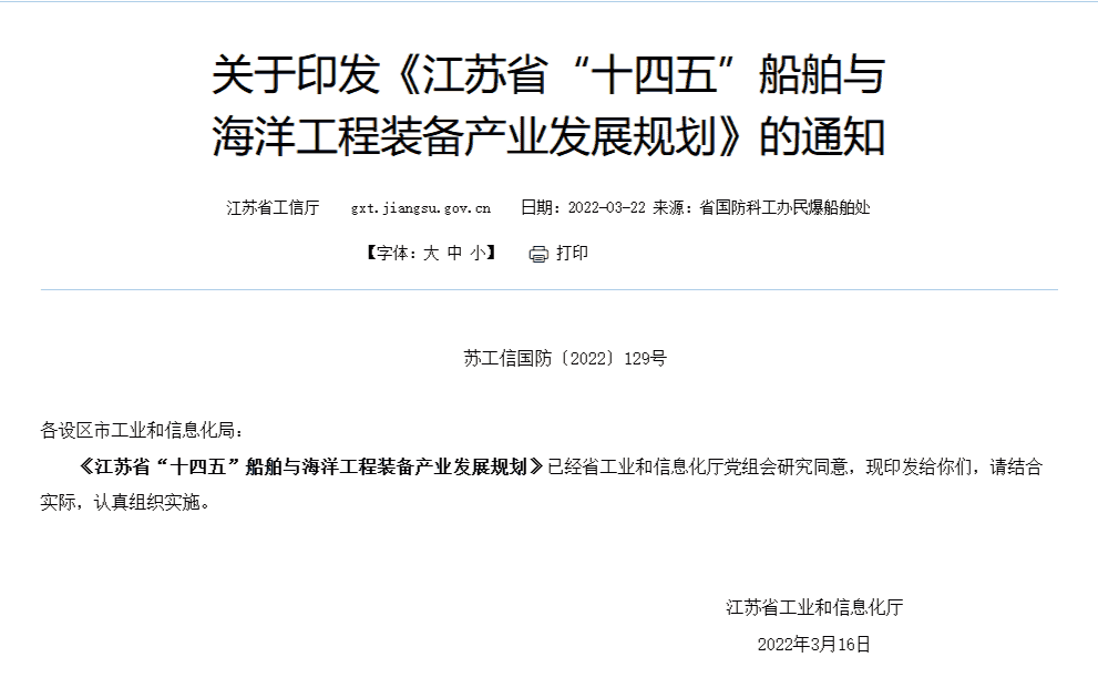 《江蘇省“十四五”船舶與海洋工程裝備產(chǎn)業(yè)發(fā)展規(guī)劃》發(fā)布