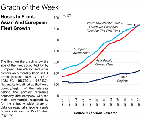 亞洲船東船隊(duì)規(guī)模終于首次超過(guò)歐洲船東。