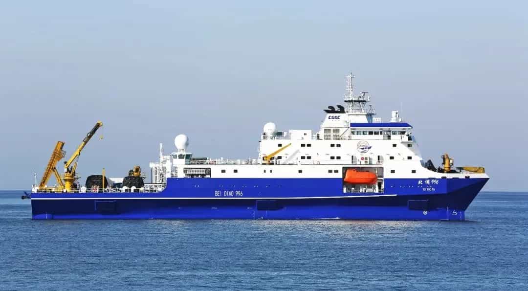 “北調(diào)996”號是一艘深遠(yuǎn)海裝備綜合試驗船,是我國“十二五”建設(shè)項目重要內(nèi)容之一。該船由中國船舶集團(tuán)有限公司旗下渤海造船廠集團(tuán)有限公司為中國船舶集團(tuán)旗下第七六〇研究所建造,中國船舶集團(tuán)旗下第七〇一所、第七〇二所聯(lián)合設(shè)計。