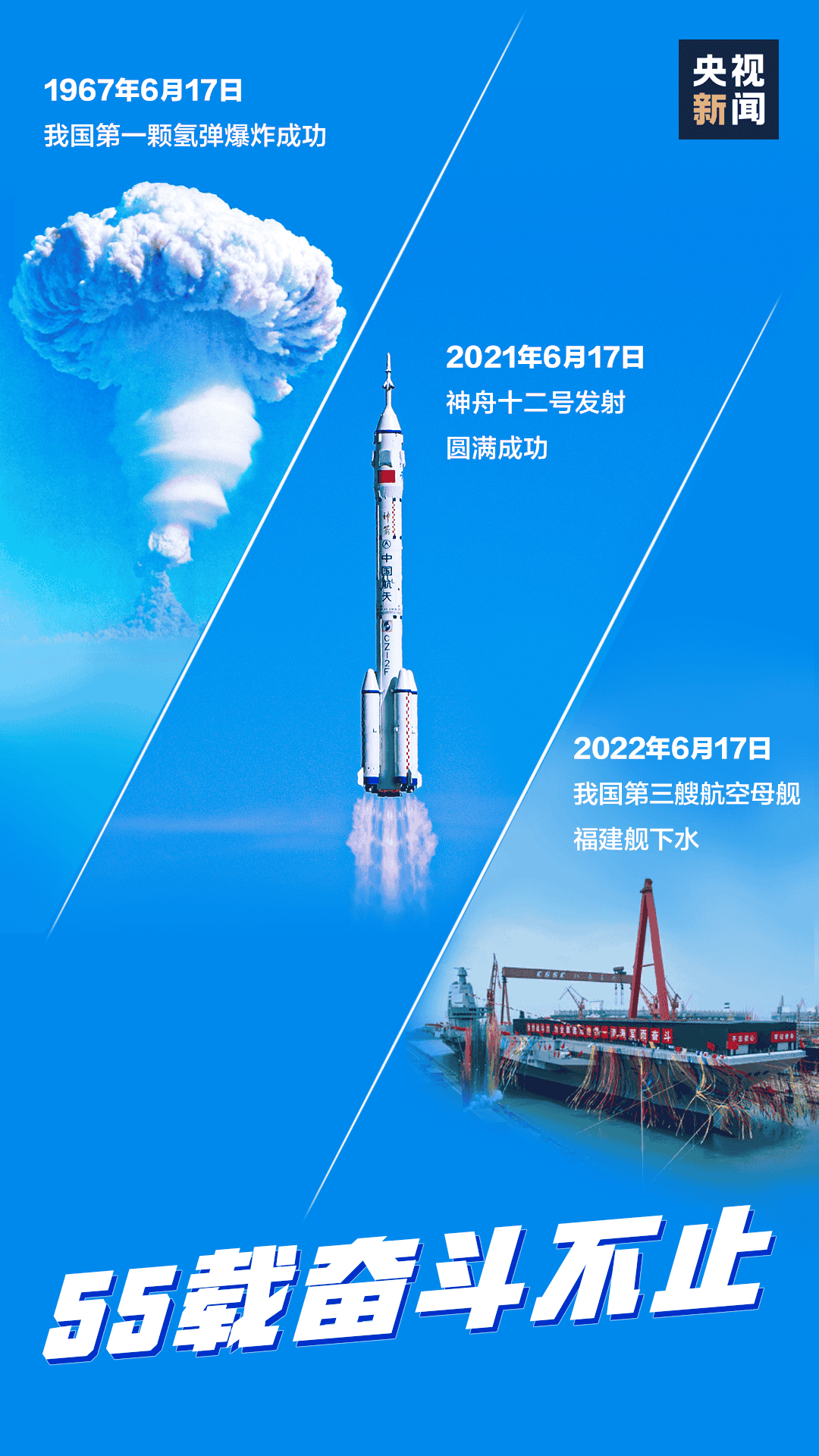 2022年6月17日,我國第三艘航空母艦福建艦下水。
