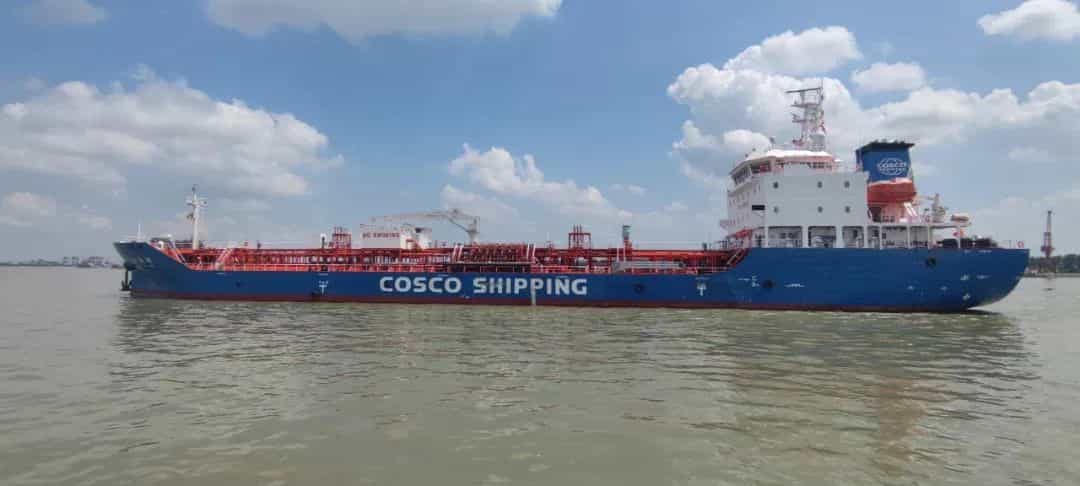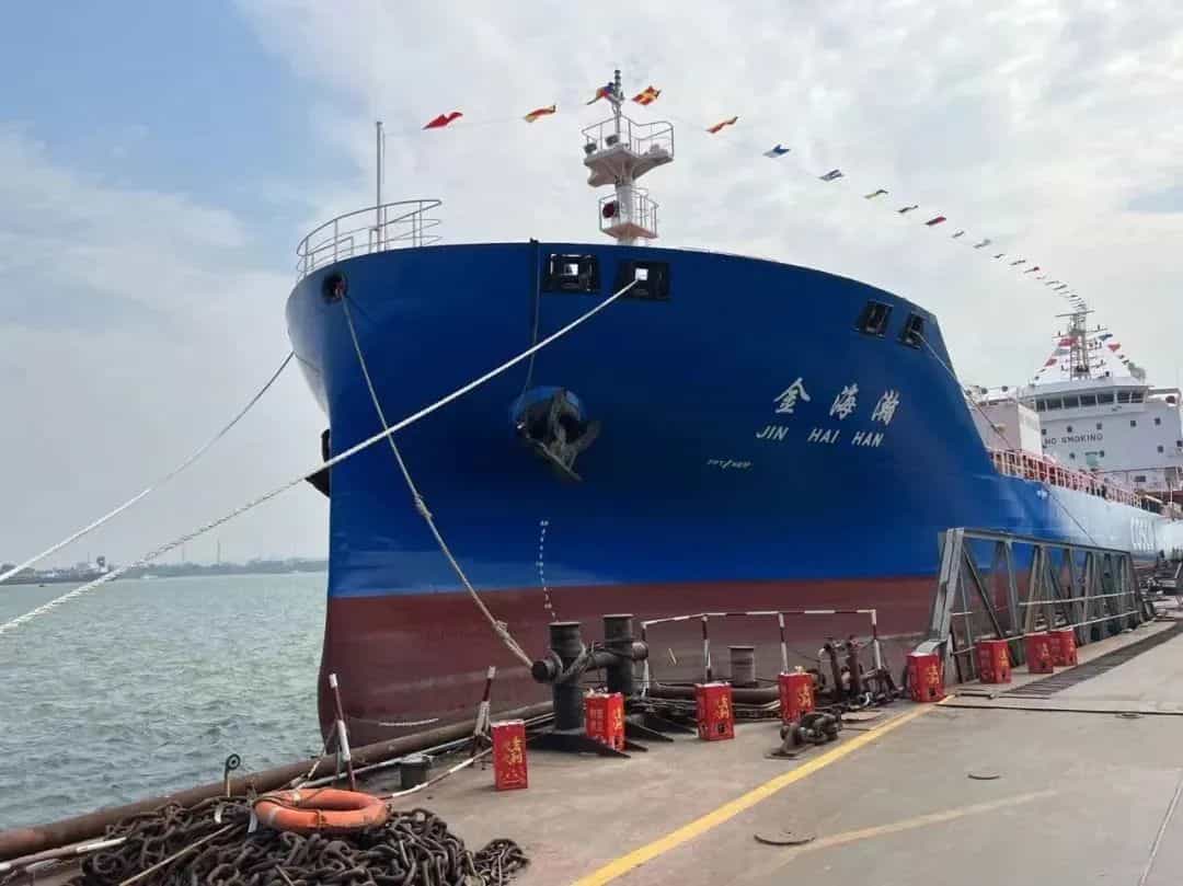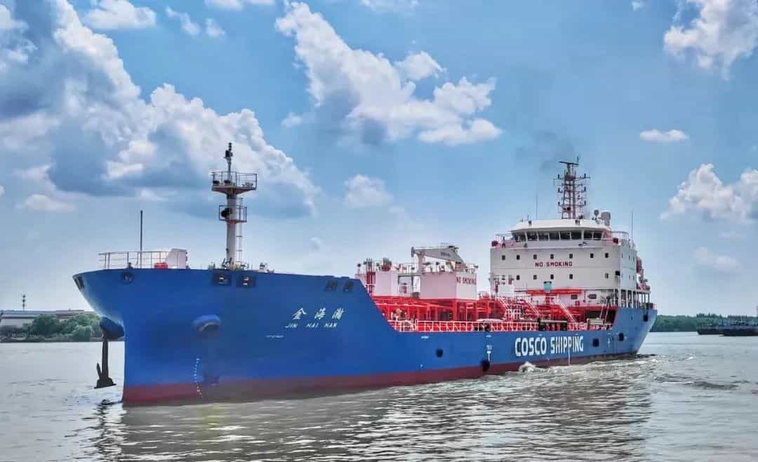 近日,由重慶川東船舶重工聯(lián)合中船貿易,為中遠海運(上海)建造的8000噸不銹鋼化學品船首制船--“金海瀚”號,舉行命名交付儀式。