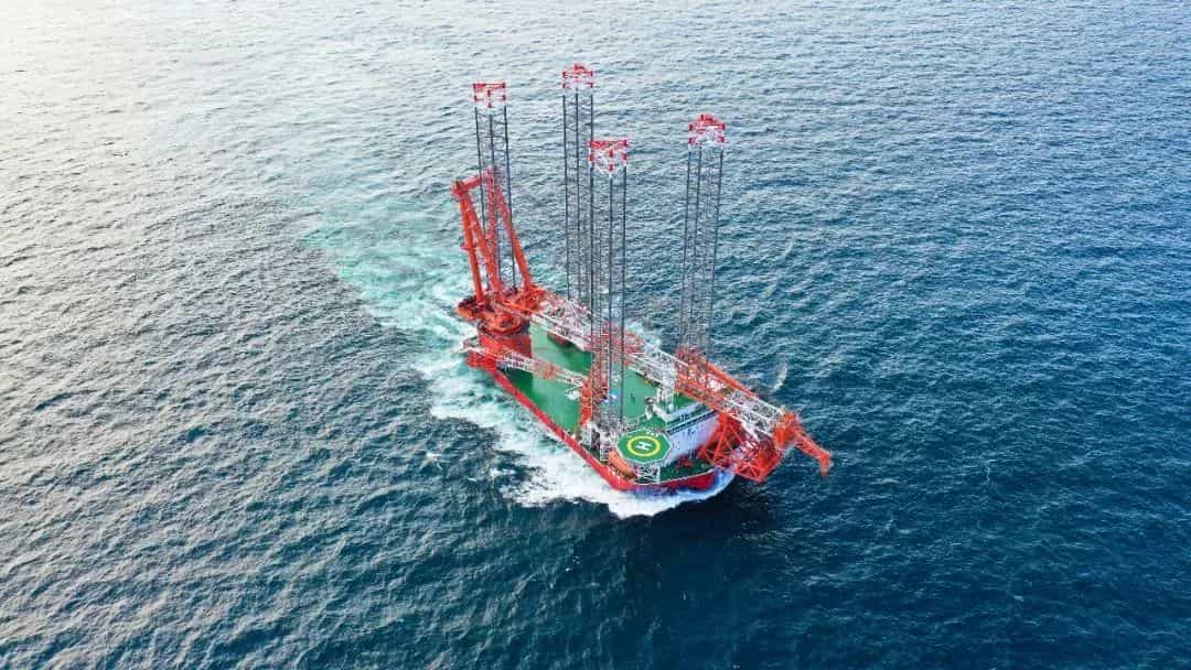 這是我國首艘符合第四代海風裝備功能標準,滿足自升、自航、深遠海等一體化綜合施工作業(yè)要求的風電安裝平臺。
