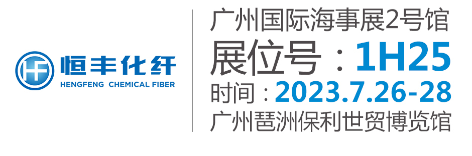 2023年7月26日-28日,廣州琶洲保利世貿(mào)博覽館一樓2號(hào)館1H25展位,恒豐化纖與全國船舶人相約2023第10屆中國廣州國際海事貿(mào)易展覽會(huì)暨論壇!