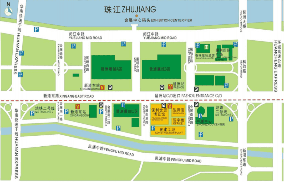 4、乘坐高鐵:距離廣州南站25分鐘車程;乘坐地鐵2號(hào)線至“昌崗”站,換乘8號(hào)線,在“琶洲站”下車,往C、D出口方向,按指示標(biāo)志抵達(dá)觀展入口E3門。