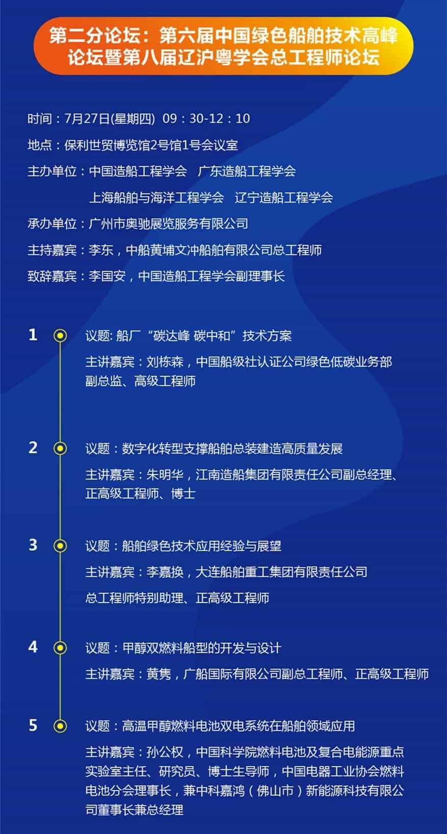 7月27日09:30-12:10,“2023第四屆中國船舶工業(yè)轉(zhuǎn)型升級高質(zhì)量發(fā)展論壇”第二分論壇“第六屆中國綠色船舶技術(shù)高峰論壇暨第八屆遼滬粵學(xué)會總工程師論壇”,將于廣州琶洲保利世貿(mào)博覽館2號館1號會議室召開。