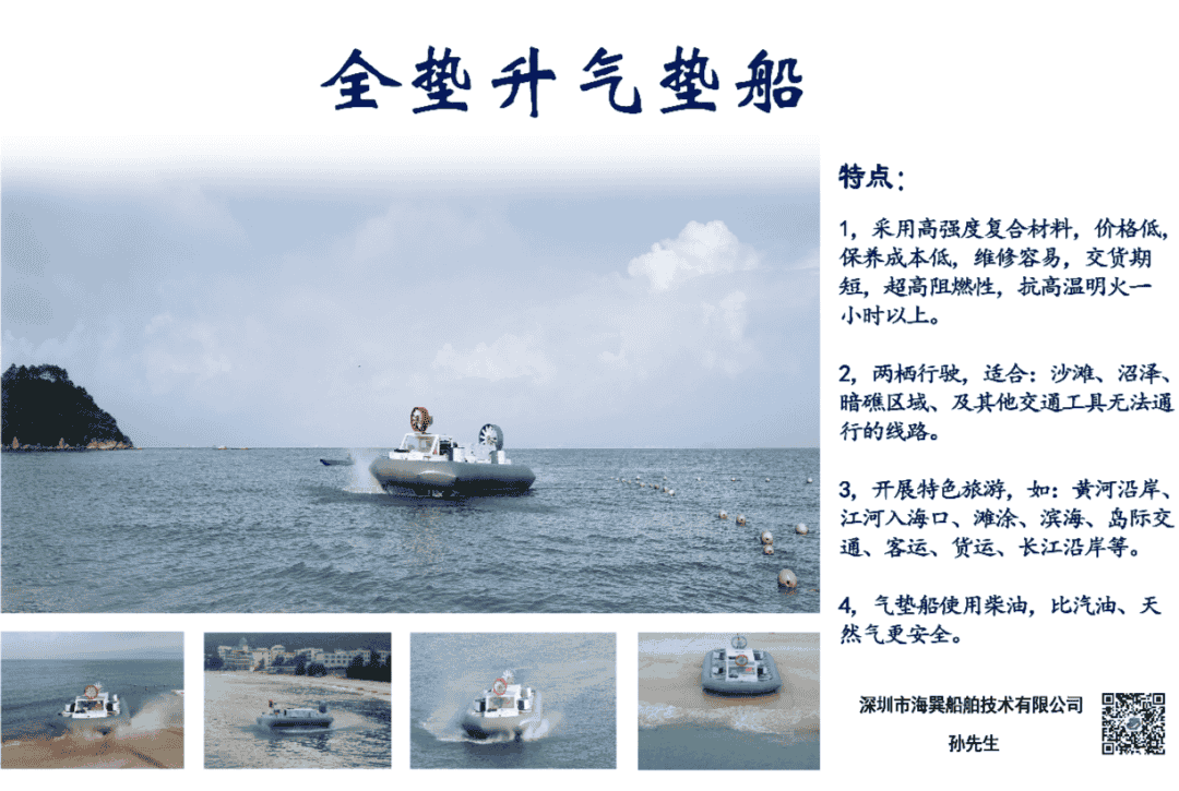 深圳市海巽船舶技術(shù)有限公司(簡稱:海巽船舶),經(jīng)營范圍包括:全墊升氣墊船、側(cè)壁式氣墊船、小水線面SWATH、遠(yuǎn)程無人高速船、遠(yuǎn)程水下工作船等。