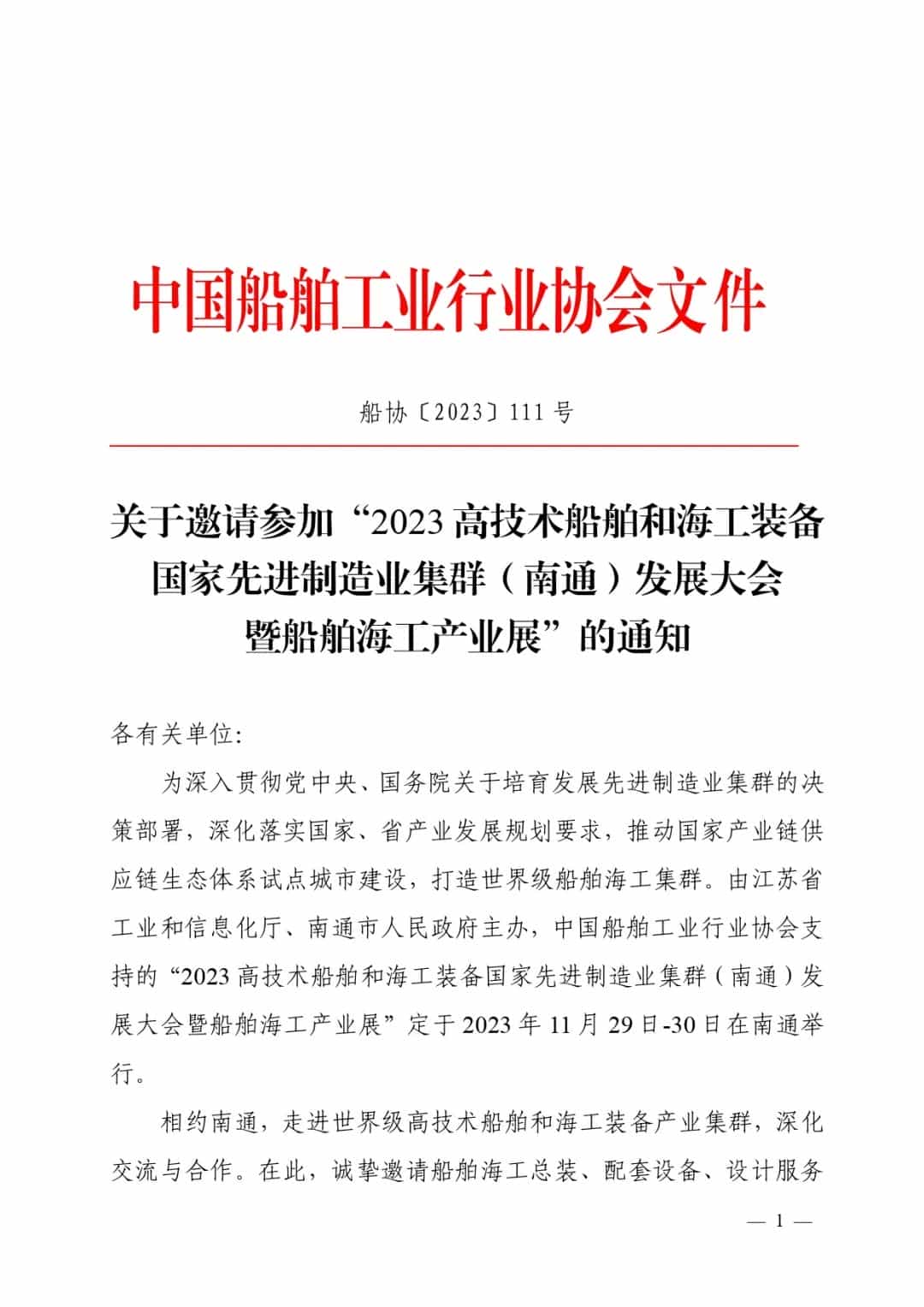 關于邀請參加“2023南通船舶海工產(chǎn)業(yè)展”的通知