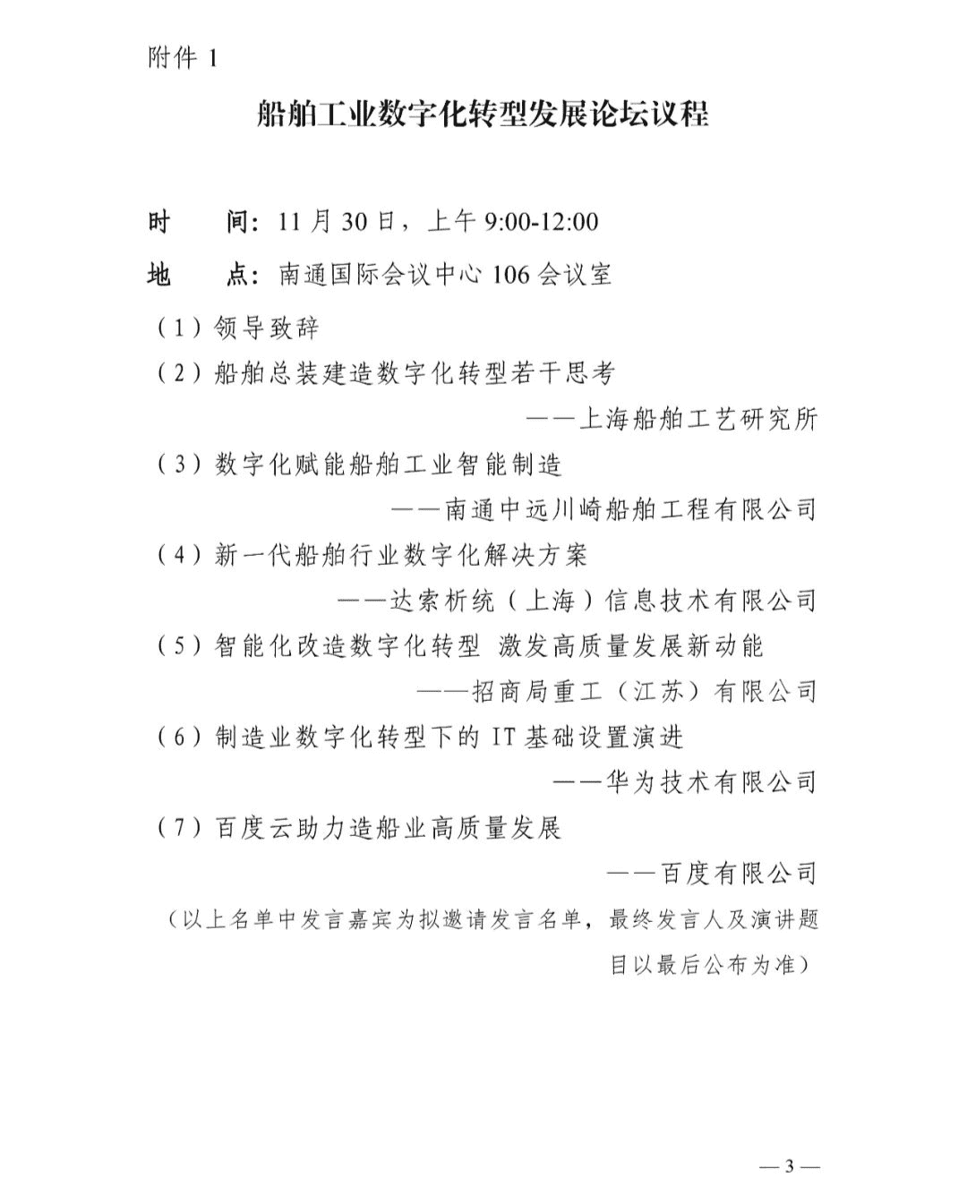 其中,由中國船舶工業(yè)行業(yè)協(xié)會、南通市工業(yè)和信息化局主辦,江蘇省船舶工業(yè)行業(yè)協(xié)會協(xié)辦的“船舶工業(yè)數(shù)字化轉(zhuǎn)型發(fā)展論壇“,將于11月30日上午,在南通國際會議中心106會議室舉行。
