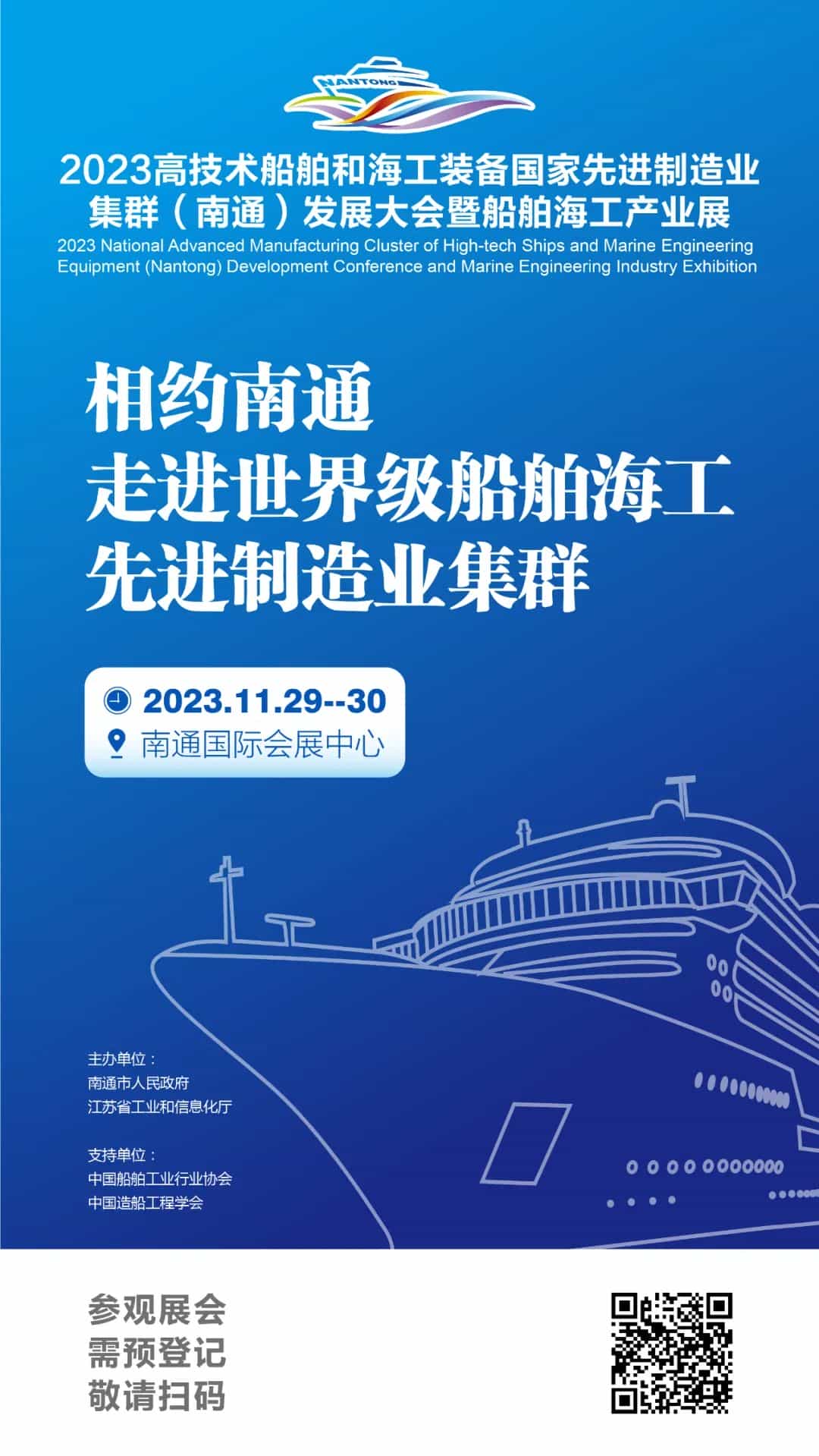 由南通市人民政府、江蘇省工業(yè)和信息化廳主辦的“2023高技術船舶和海工裝備國家先進制造業(yè)集群(南通)發(fā)展大會暨船舶海工產業(yè)展”,將于11月29日-30日在南通國際會展中心隆重召開。