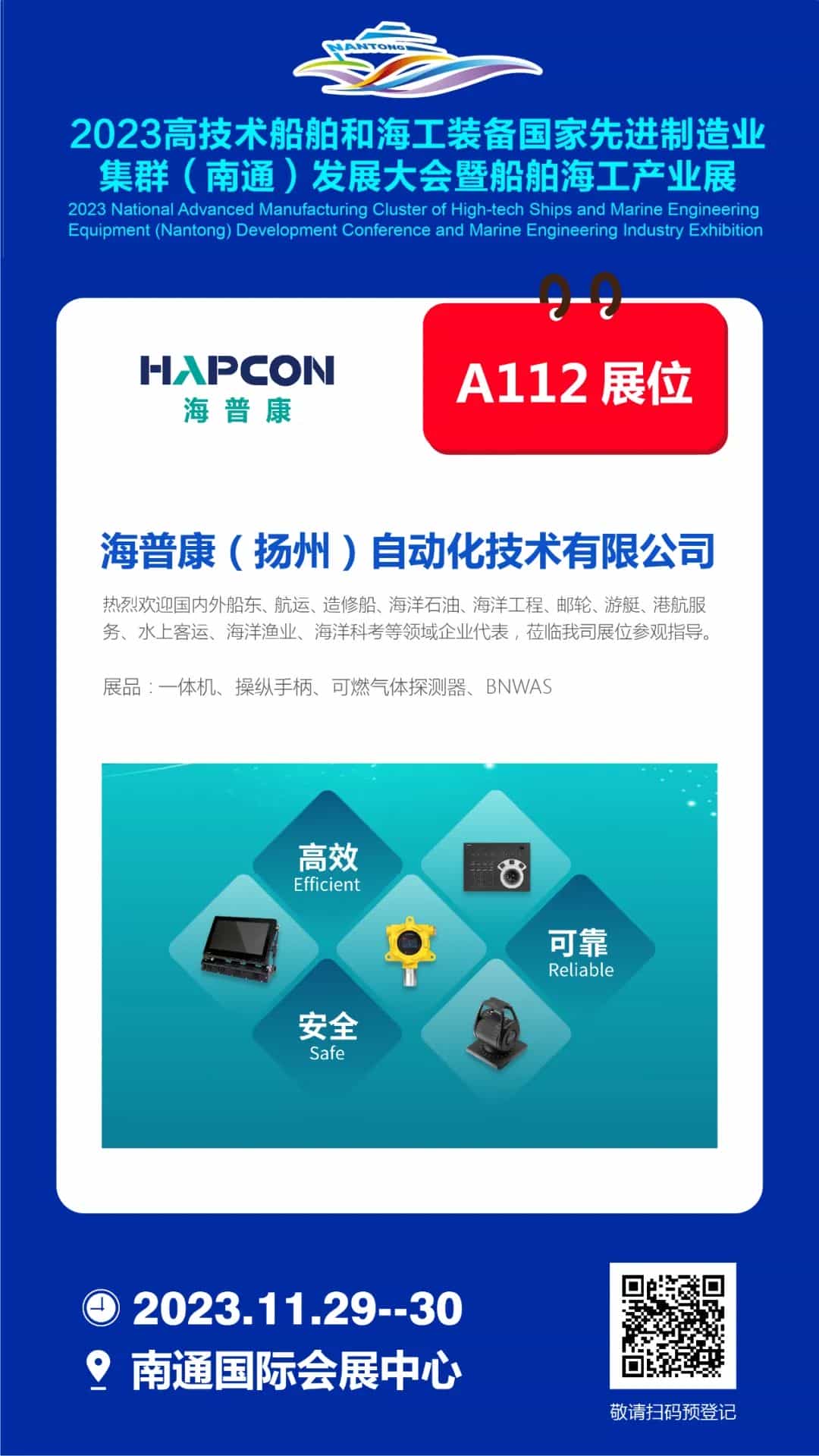 海普康A(chǔ)112展位,誠(chéng)邀船舶人參觀2023南通船舶海工產(chǎn)業(yè)展
