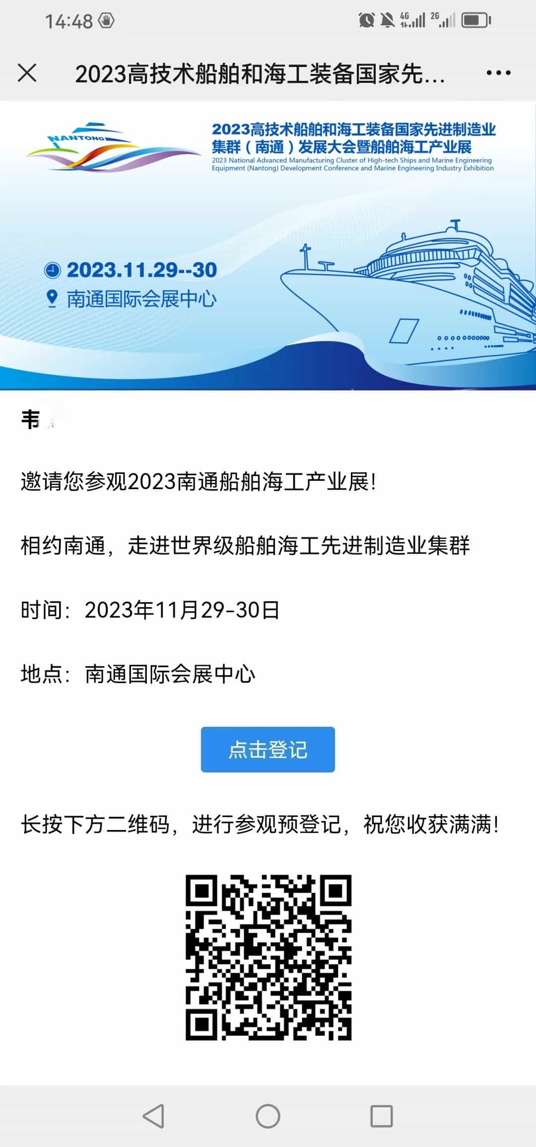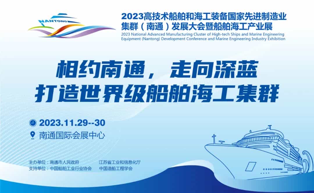 由南通市人民政府、江蘇省工業(yè)和信息化廳主辦的“2023高技術(shù)船舶和海工裝備國家先進(jìn)制造業(yè)集群(南通)發(fā)展大會暨船舶海工產(chǎn)業(yè)展”將于11月29日-30日在南通國際會展中心舉行。