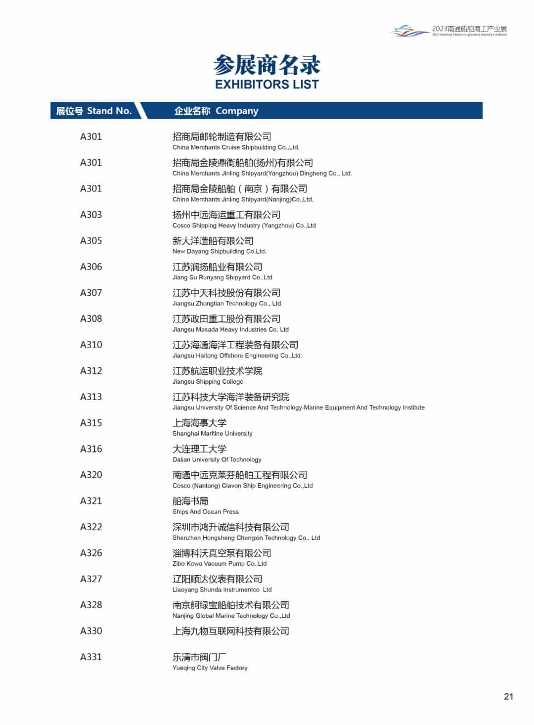 議程--創(chuàng)新產(chǎn)品和技術(shù)交流會丨2023南通船舶海工產(chǎn)業(yè)展參展商名錄更新