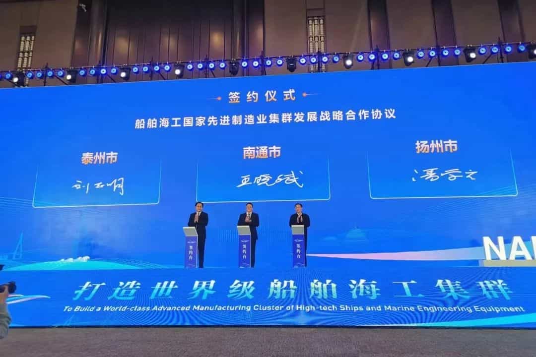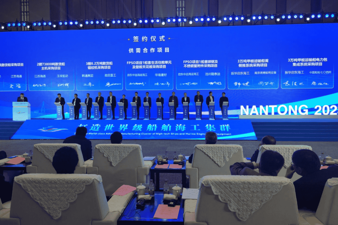 開幕式上,省國防科工辦發(fā)布《江蘇省南通市、泰州市、揚(yáng)州市高技術(shù)船舶和海工裝備國家先進(jìn)制造業(yè)集群培育提升三年行動(dòng)方案(2023-2025)》。通泰揚(yáng)三地簽訂船舶海工國家先進(jìn)制造業(yè)集群發(fā)展戰(zhàn)略合作協(xié)議。工信部人才交流中心與南通市人民政府簽署戰(zhàn)略合作協(xié)議。三批次19個(gè)重點(diǎn)項(xiàng)目集中簽約。會(huì)上播放技術(shù)創(chuàng)新與產(chǎn)品交付集錦。