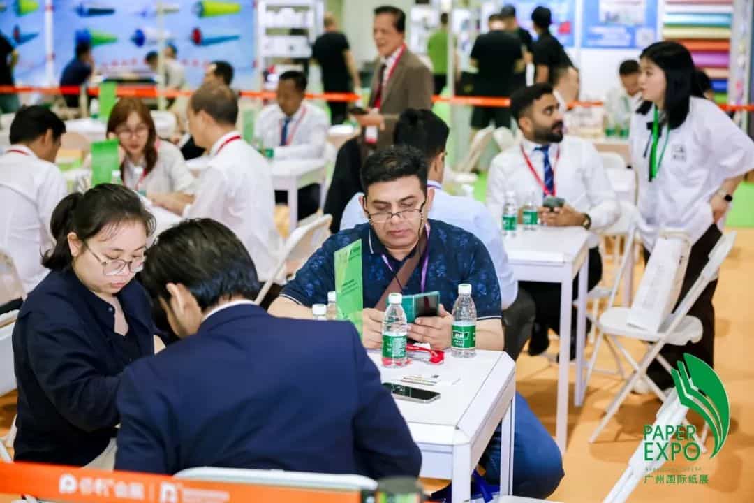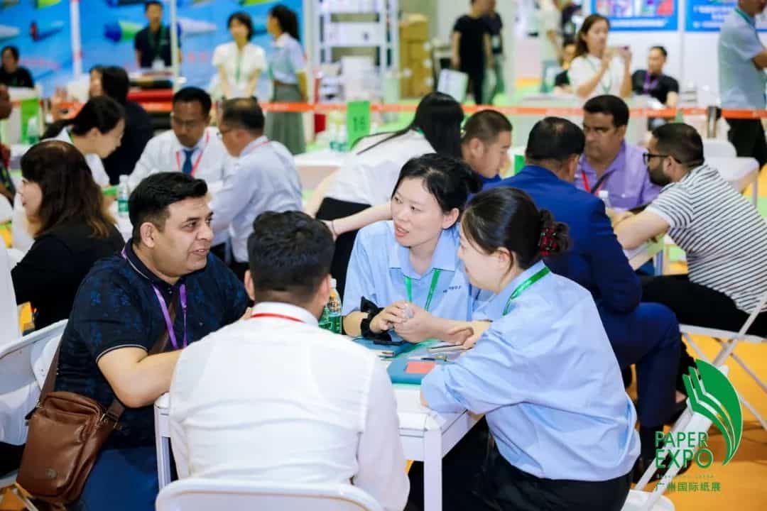 多家參展商與緬甸、巴基斯坦采購商,在2024廣州國際紙展對接洽談