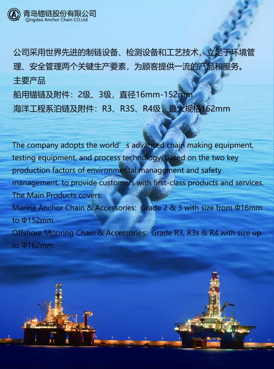 青島錨鏈股份有限公司(簡(jiǎn)稱“青島錨鏈”,展位號(hào)1B60)始建于1958年,經(jīng)過(guò)半個(gè)多世紀(jì)的不懈努力,現(xiàn)已發(fā)展成為生產(chǎn)船用錨鏈和海洋工程系泊鏈的世界著名專業(yè)公司。