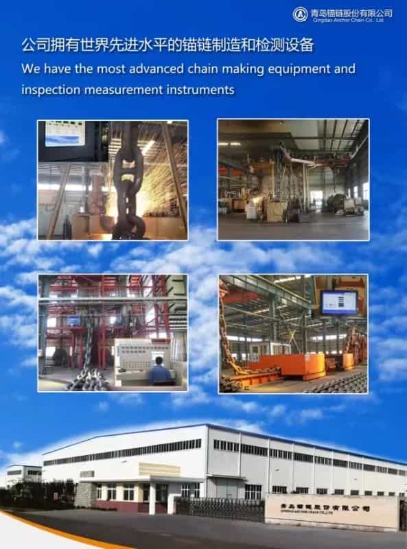 公司采用世界先進(jìn)的制鏈設(shè)備、檢測(cè)設(shè)備和工藝技術(shù),按照ISO1704國(guó)際標(biāo)準(zhǔn)和GB/T549-2017、GB/T20848-2017國(guó)家標(biāo)準(zhǔn)以及各船級(jí)社規(guī)范生產(chǎn) ø16mm - ø152mm 各種規(guī)格的2級(jí)、3級(jí)船用錨鏈及附件和R3、R3S、R4級(jí)海洋工程系泊鏈及附件,也可按客戶要求生產(chǎn)各種非標(biāo)準(zhǔn)鏈條和附件。