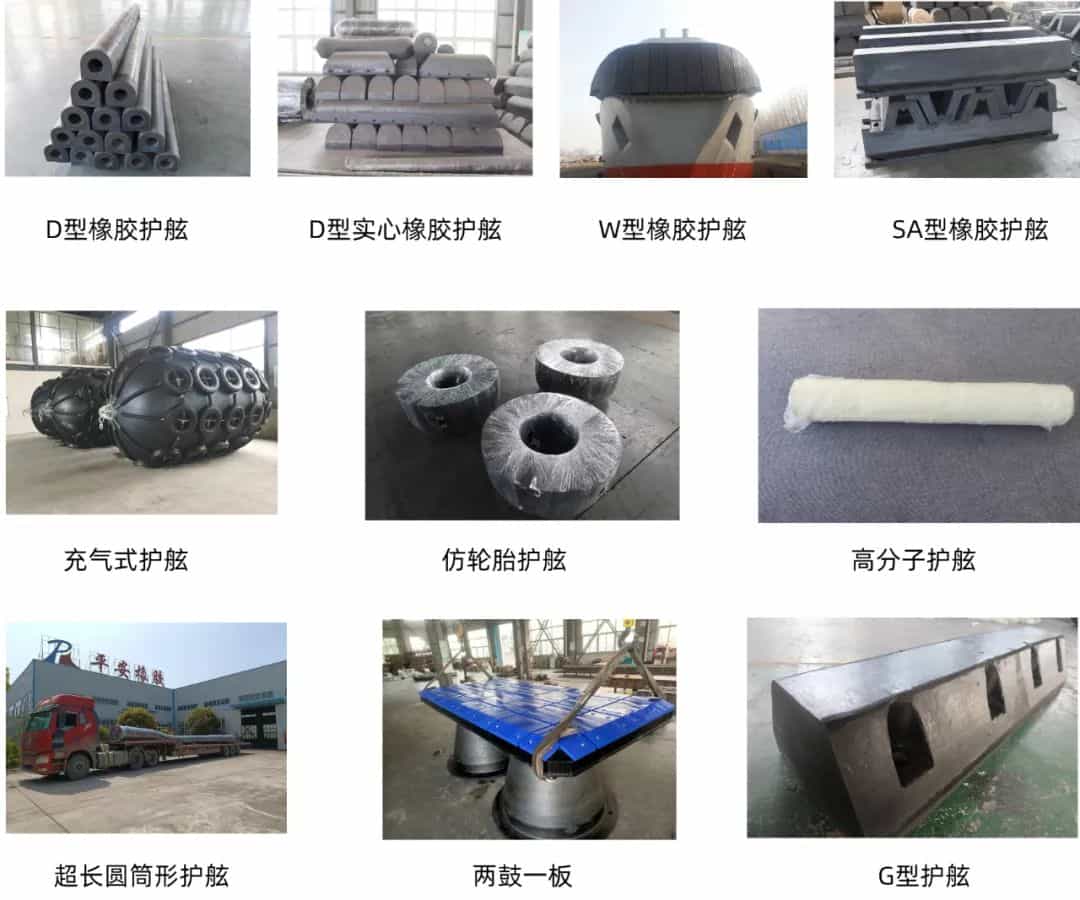 船用橡膠件包括:船用橡膠護舷(國標件、非標件)、艙口蓋密封條、氣囊、尾軸橡膠銅套、絕緣橡膠塊和充氣式護舷等。