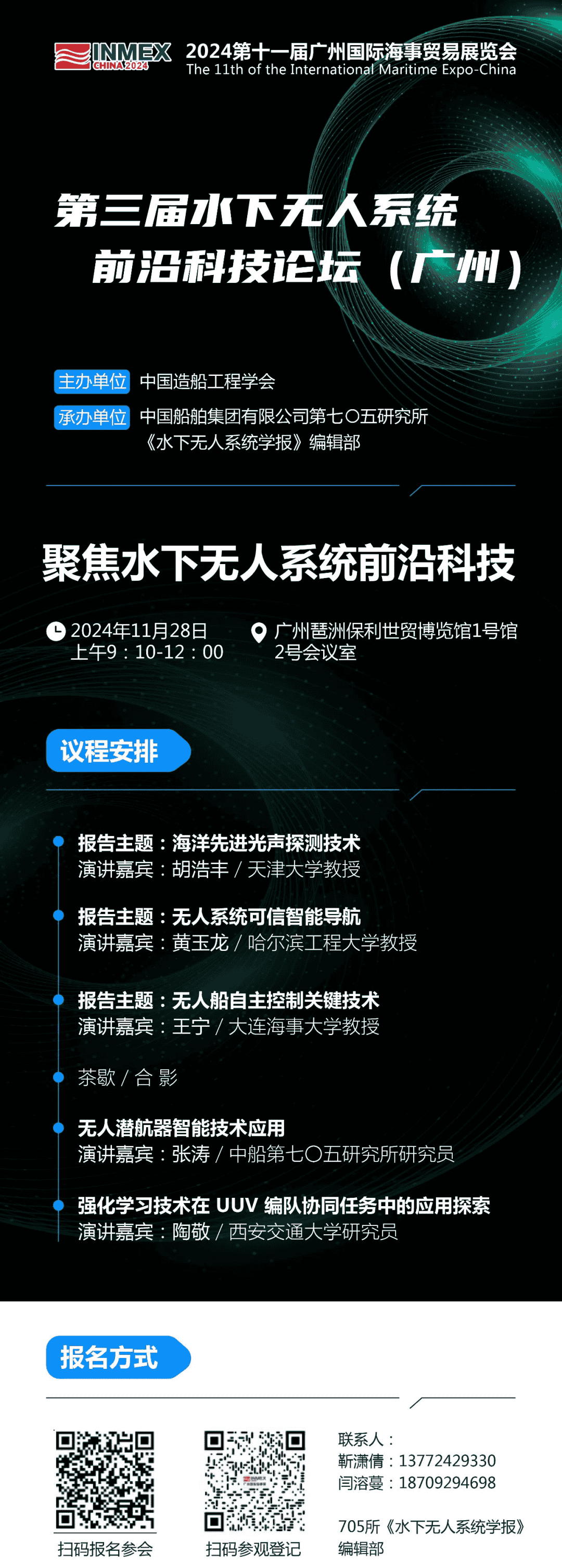由中國造船工程學(xué)會(huì)主辦,中國船舶集團(tuán)有限公司第七〇五研究所《水下無人系統(tǒng)學(xué)報(bào)》編輯部承辦的“第三屆水下無人系統(tǒng)前沿科技論壇(廣州)”,將于11月28日在廣州國際海事展期間召開。