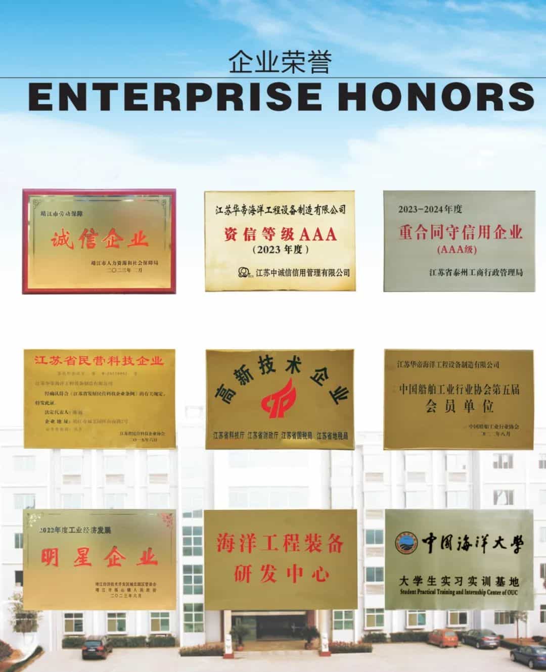公司致力于科技創(chuàng)新,已經(jīng)被認定為江蘇省“高新技術企業(yè)”和江蘇省“專精特新中小企業(yè)”,并與中國海洋大學、中船研究所等院校和科研機構達成戰(zhàn)略合作,形成產(chǎn)學研一體化發(fā)展模式。