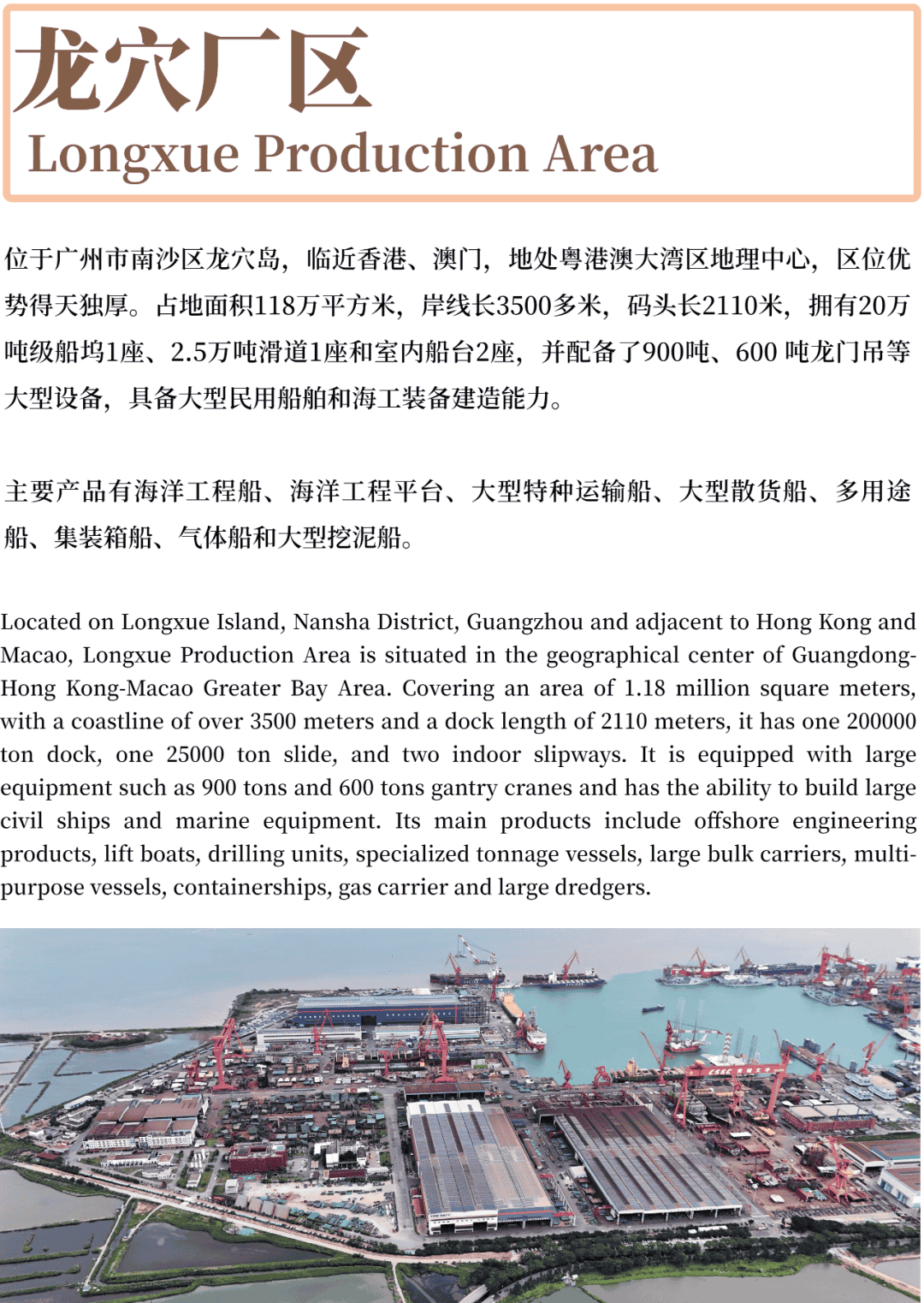 黃埔文沖擁有五大核心廠區(qū),占地近320萬平方米,碼頭合計(jì)5300多米,擁有1.2萬噸級、2.5萬噸級、7萬噸級、15萬噸級、20萬噸級等多座大型船塢,為中國船舶行業(yè)的蓬勃發(fā)展提供了強(qiáng)力支撐。
