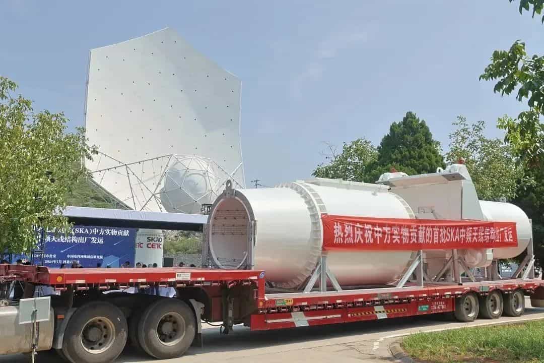 04 首批國(guó)際大科學(xué)工程SKA中頻天線結(jié)構(gòu)出廠發(fā)運(yùn)
