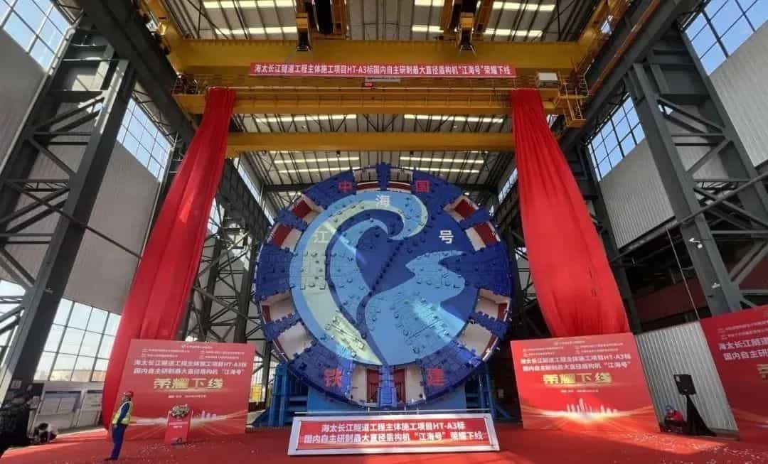 10月31日,中國(guó)鐵建重工集團(tuán)、中鐵十四局集團(tuán)聯(lián)合打造:最大開(kāi)挖直徑達(dá)16.64米的超大直徑盾構(gòu)機(jī)“江海號(hào)”下線。這是由我國(guó)科研人員自主研制出的最大直徑盾構(gòu)機(jī)。下線后,它將應(yīng)用于目前世界最長(zhǎng)公路水下盾構(gòu)隧道--海太長(zhǎng)江隧道的施工。